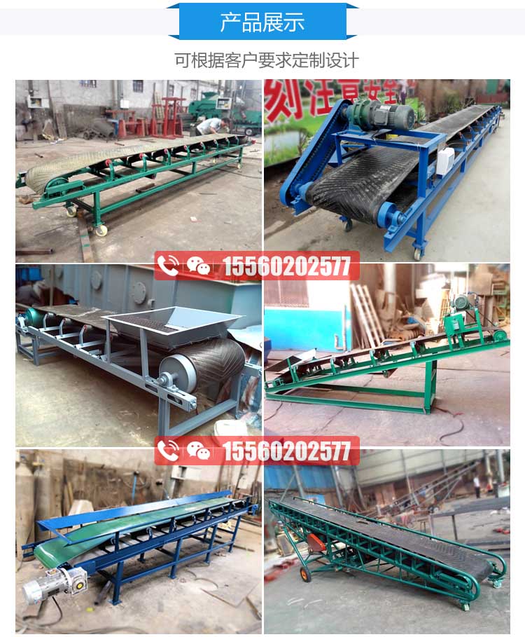 可根據(jù)客戶(hù)要求現(xiàn)場(chǎng)制作不同帶寬的輸送機(jī)。可移動(dòng)式,固定式,升降方式有電機(jī)升降和人工升降,客戶(hù)可根據(jù)自己實(shí)地情況訂購(gòu)不同款式的輸送機(jī)。